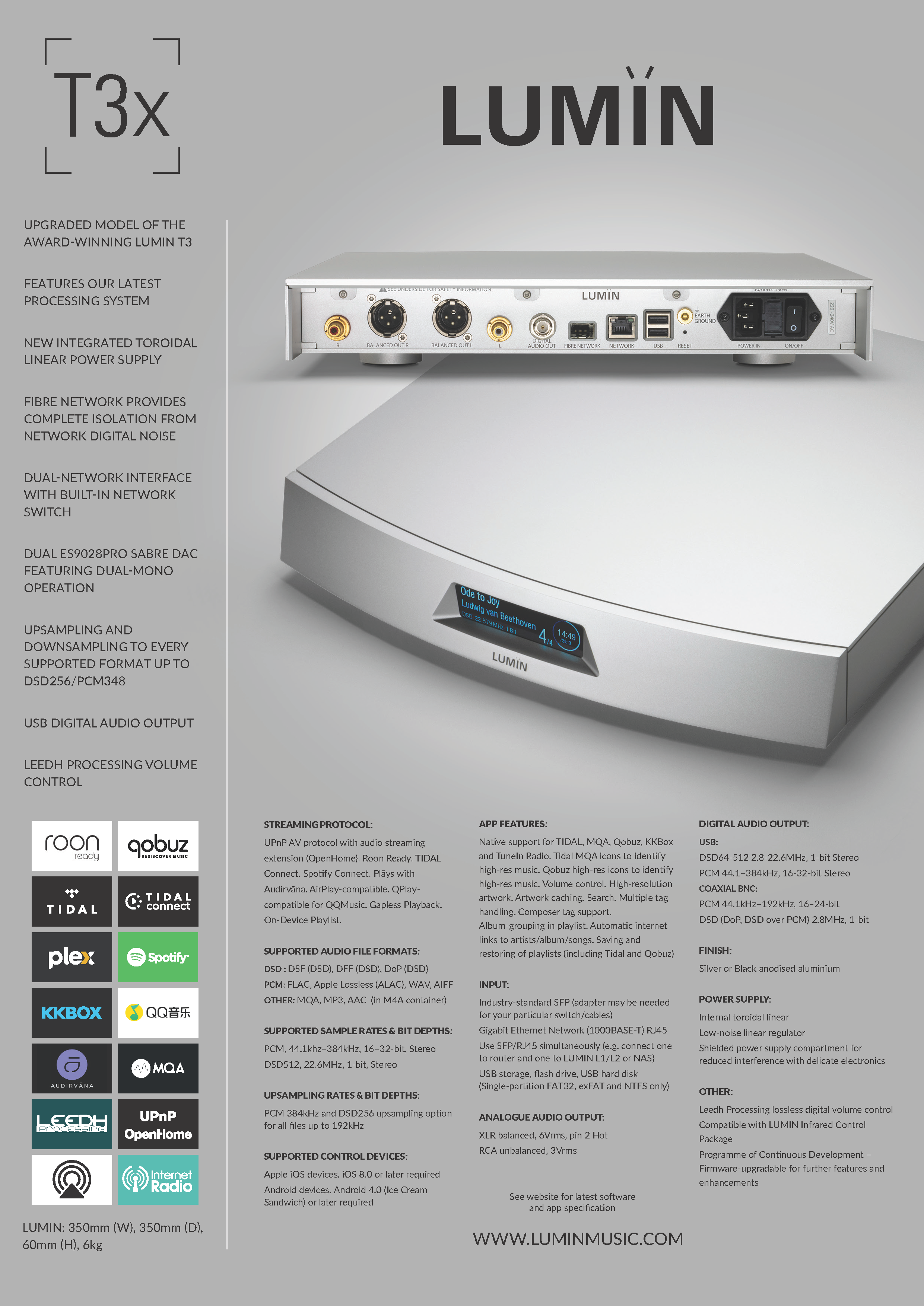 - 首款配備內置線性電源的 LUMIN T 系列播放器