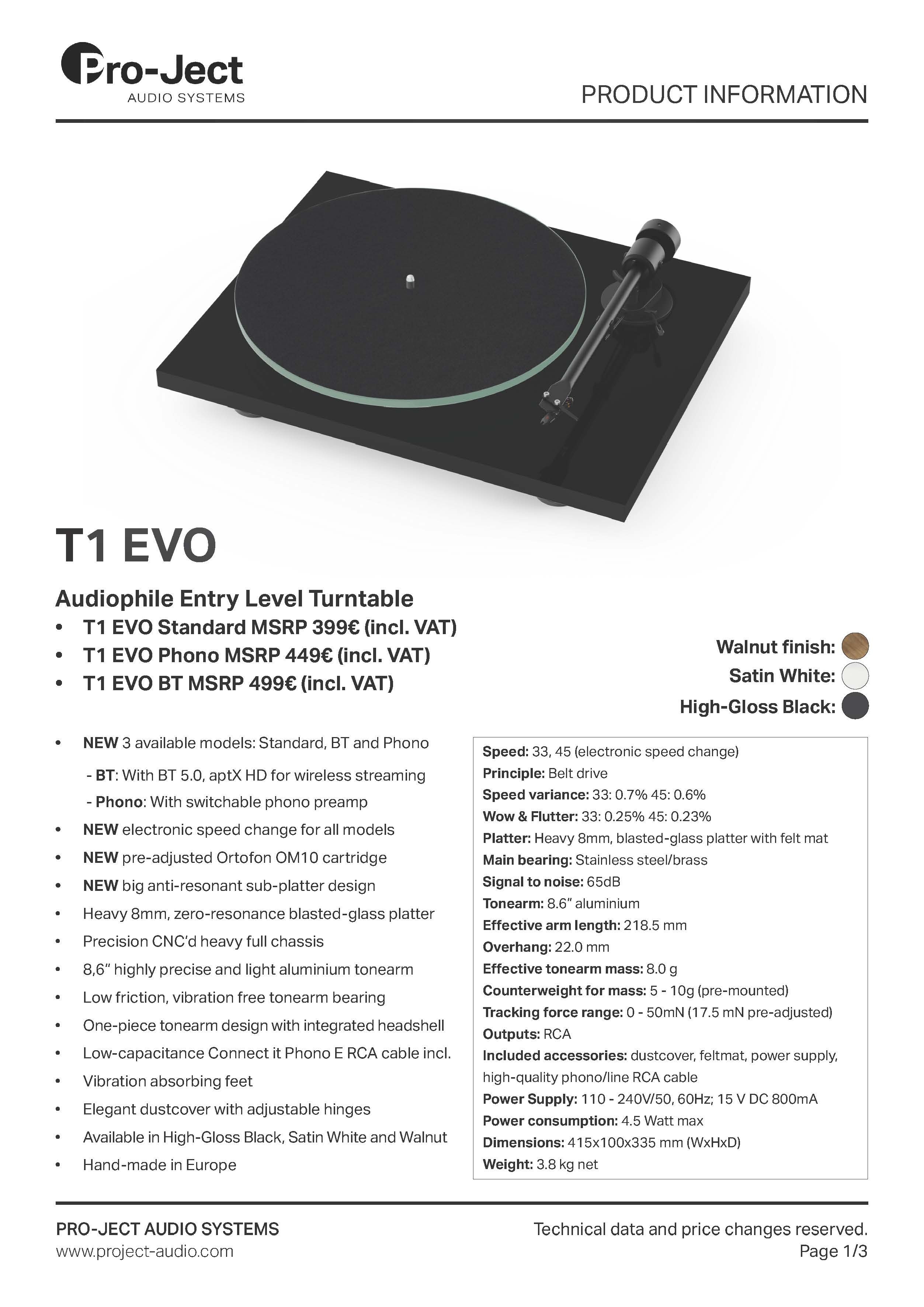 Pro-Ject T1 EVO BT 黑膠唱盤