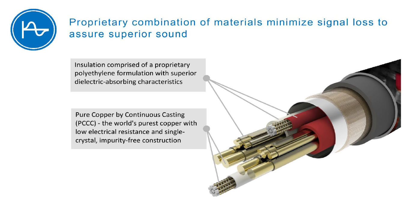 Clarus designs cables for discriminating audiophiles using the purist copper available. Pure Continuous Cast Copper (PCCC) uses a unique proprietary mold extrusion process that creates substantial lengths of single-crystal copper that is directional, free of impurities, flexible, corrosion-resistant, with low electrical resistance, and non-crystal boundaries that are structurally perfect.