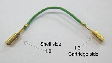 All Ortofon cartridges have a colour coding of the terminals, indicating red and green for right channel respectively hot and ground terminal. White and blue for left channel respectively hot and ground terminal. Green terminal will always be used for grounding the cartridge housings or motor-system, whenever connected inside the cartridge.