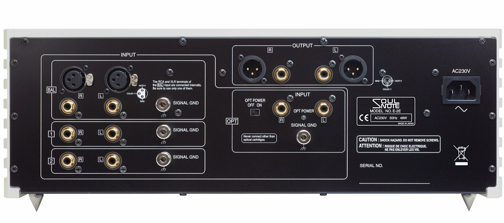 The differential amplifier gain has precise RIAA characteristics as a result of the balanced load circuits and uses SOULNOTE's original perfectly balanced non-NFB circuits to eliminate the shortcomings of conventional NF and CR type circuitry. The board for each right and left channel are completely independent of each other, while the dual mono configuration creates precise and expansive spatial presentations.