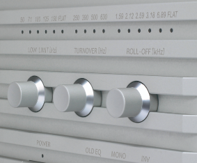Six kinds of Roll-Off (high range attenuation frequency), four kinds of Turn Over (low range amplification frequency), and six kinds of Low Limit (ultralow frequency amplification limit) are all independent of each other and can be changed individually.