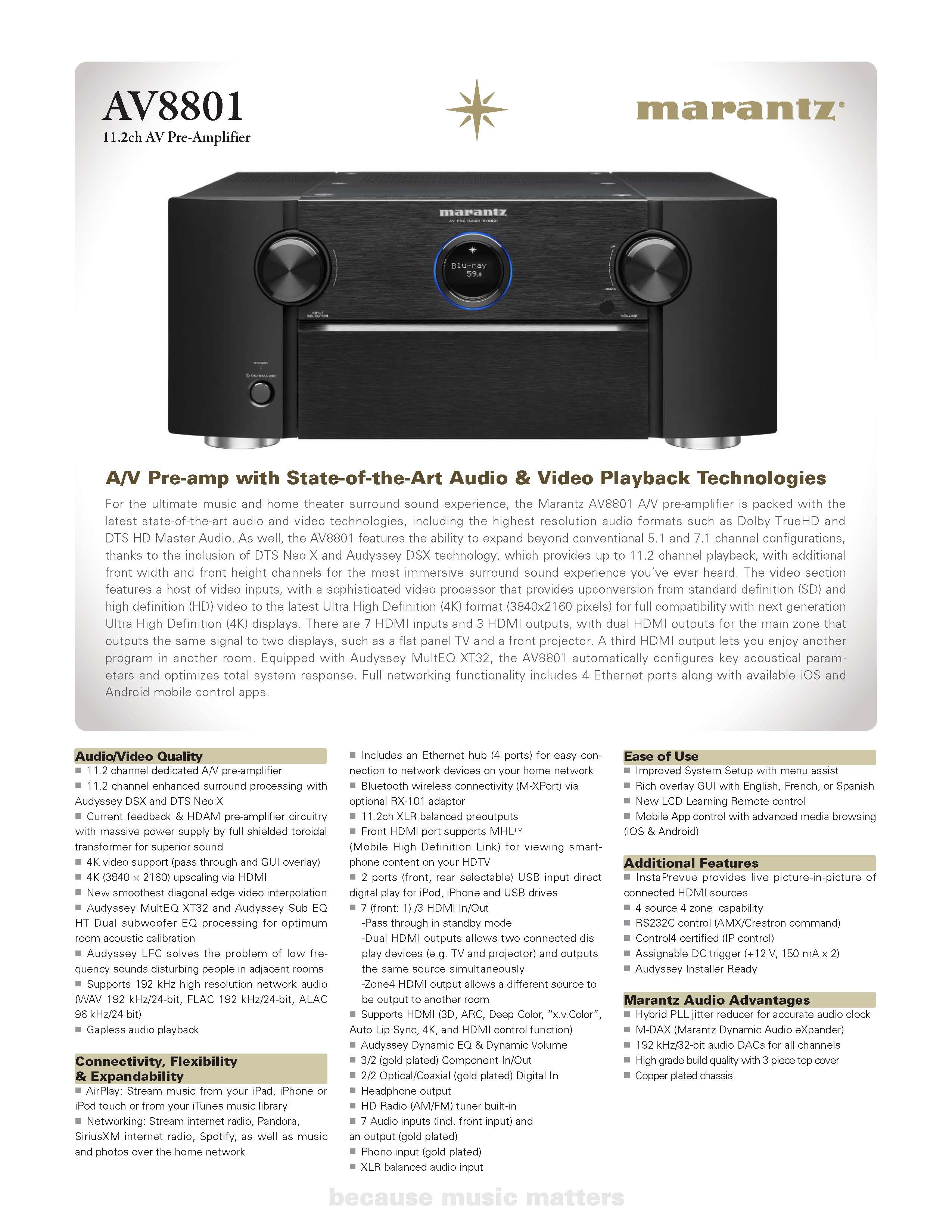 Marantz AV8801 11.2 channel AV 前級處理器 (二手)