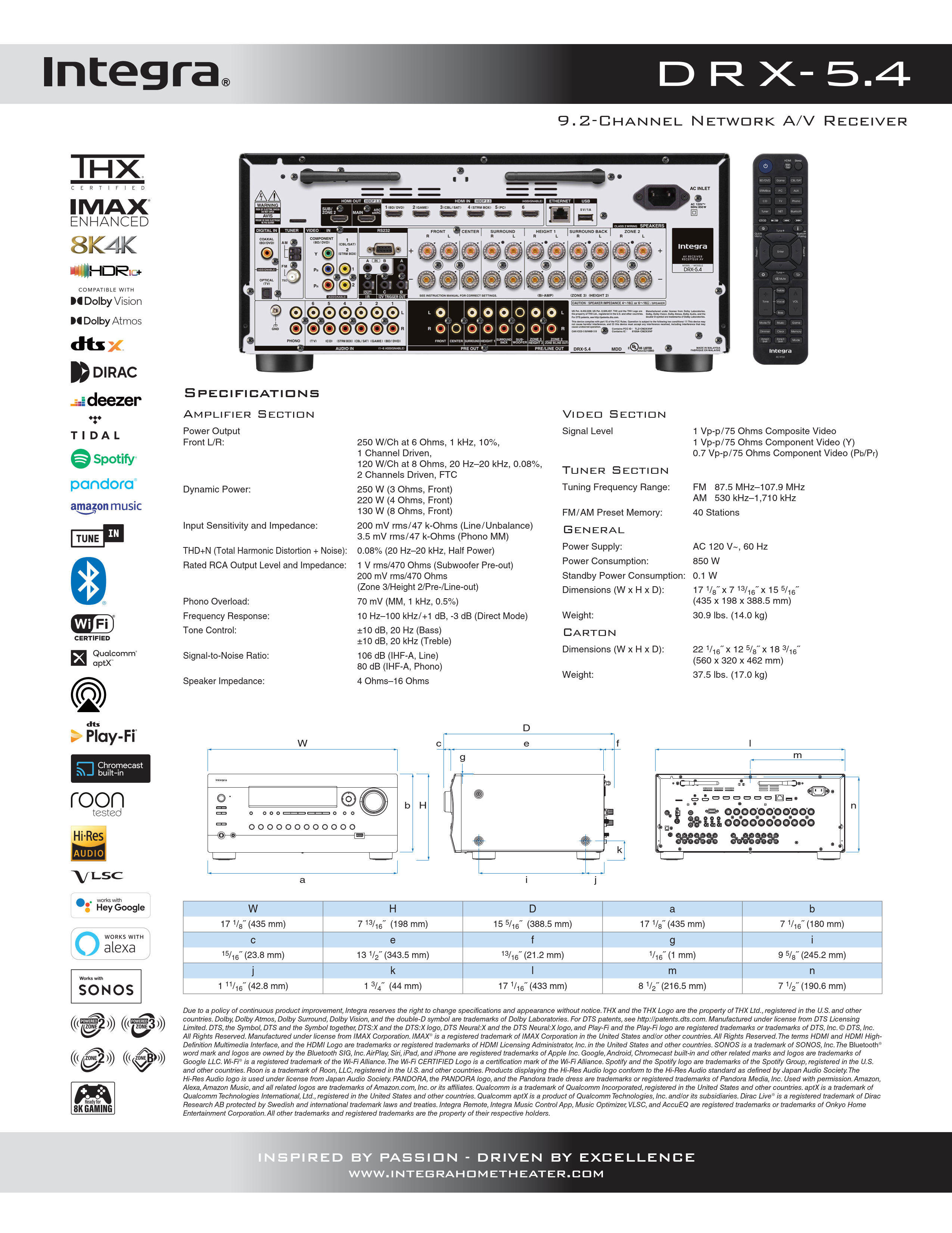 Integra products are designed and engineered to meet the demands of leading custom installers. CI Centric features such as Web Setup, Onboard HDMI Diagnostics, and compatibility with Remote Monitoring systems like OVRC Pro and Domotz make Integra AVRs the choice of the modern integrator. Optional rack mount kits provide a clean, finished look when installed in racks and cabinets, while a unique bright white back panel facilitates connections in hard-to-reach areas.