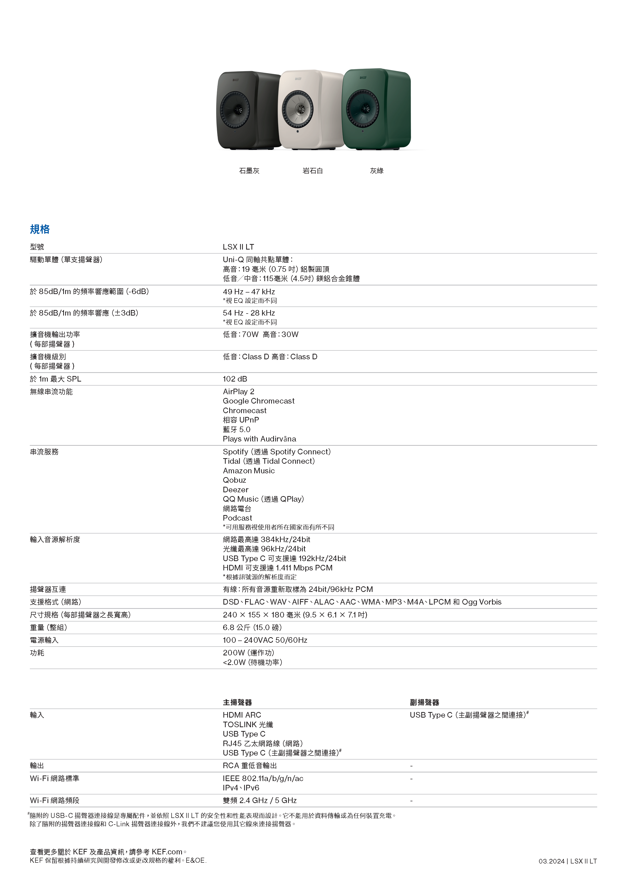 第二代升級版的 LSX II LT 突破細小音箱界限,為你帶來更自然真實的高解析音效。全方位支援不同音源,透過 AirPlay 2、Chromecast、Spotify、Tidal 等串流,或連接至手提電腦、電視等,享受高保真聲音,從未如此簡單。