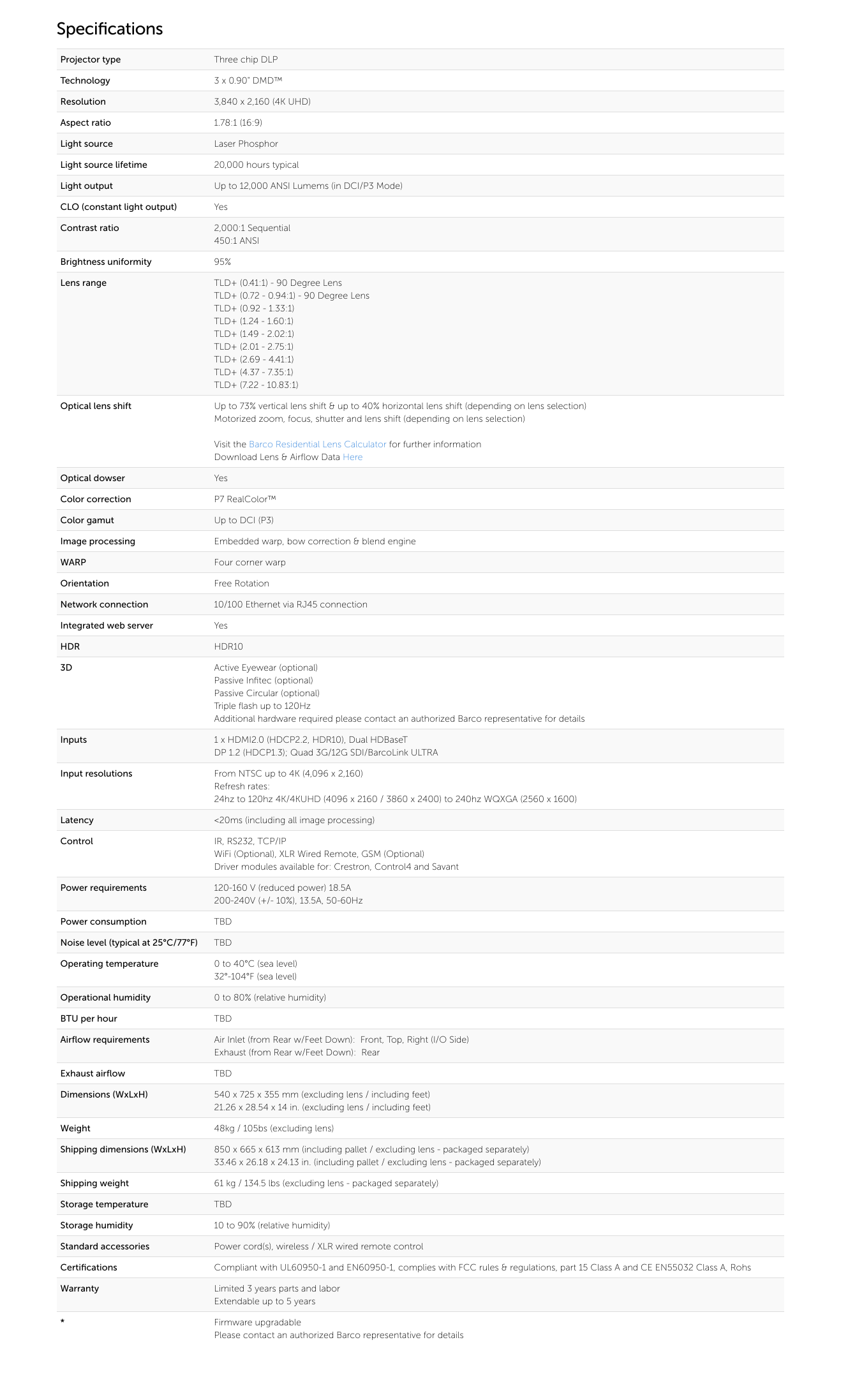 比利時影像專家Barco Njord 頂級私人影院投影機, 具備4K UHD解像度, HDR, 16:9-Cinemascope切換,亮度高達12000流明, 三晶片DLP激光光源。發燒家庭影院終極之選。