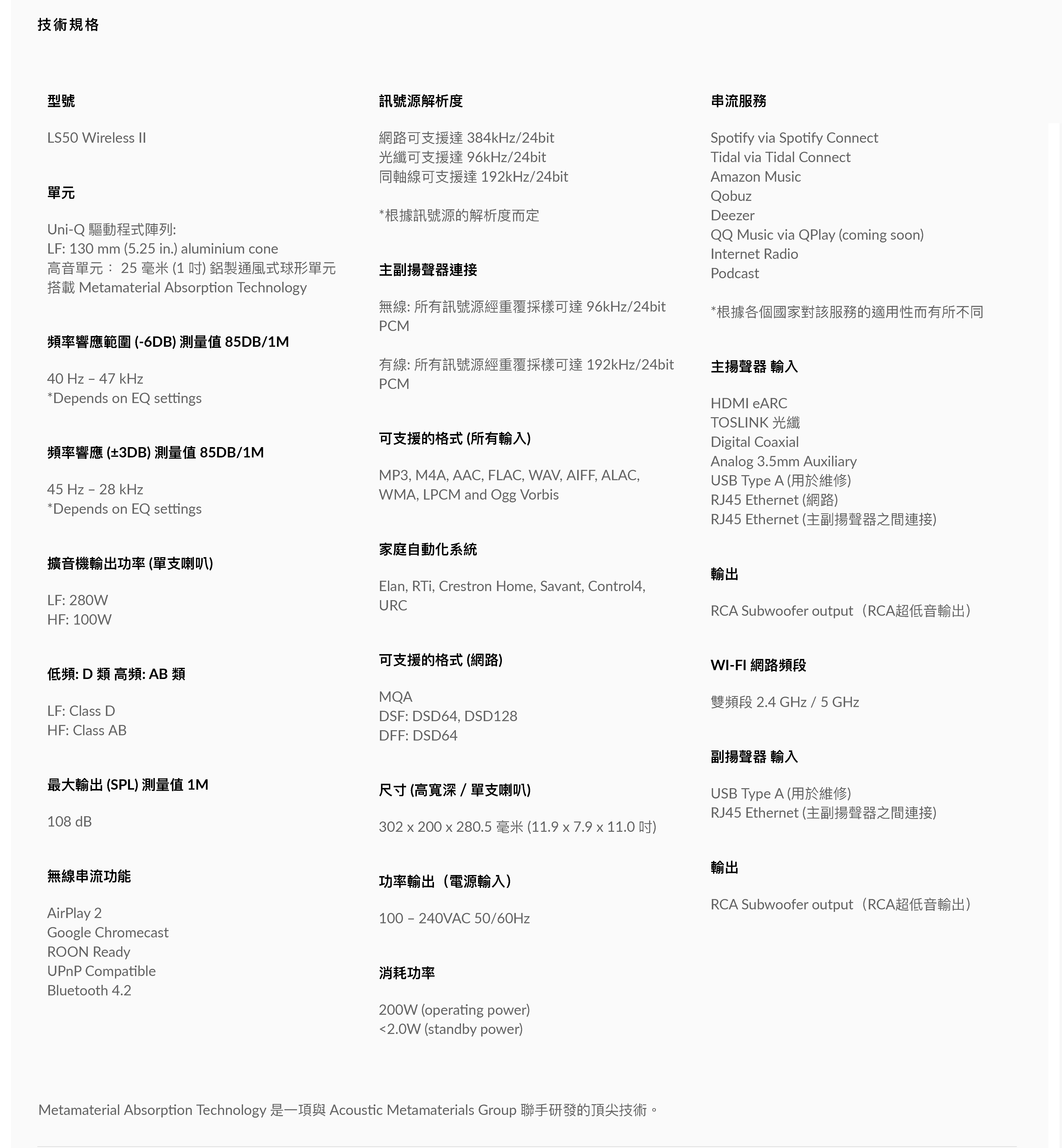 LS50 Wireless II擁有卓越的音質表現,是一組功能齊全的一體式無線音響系統。透過 AirPlay2、Chromecast 等無線連接功能,能輕鬆與家中各種音源串流播放。另外,更可選擇以有線方式連接電視、遊戲主機、黑膠唱盤。從此,享受極致音色變得更輕易自在,不受束縛。