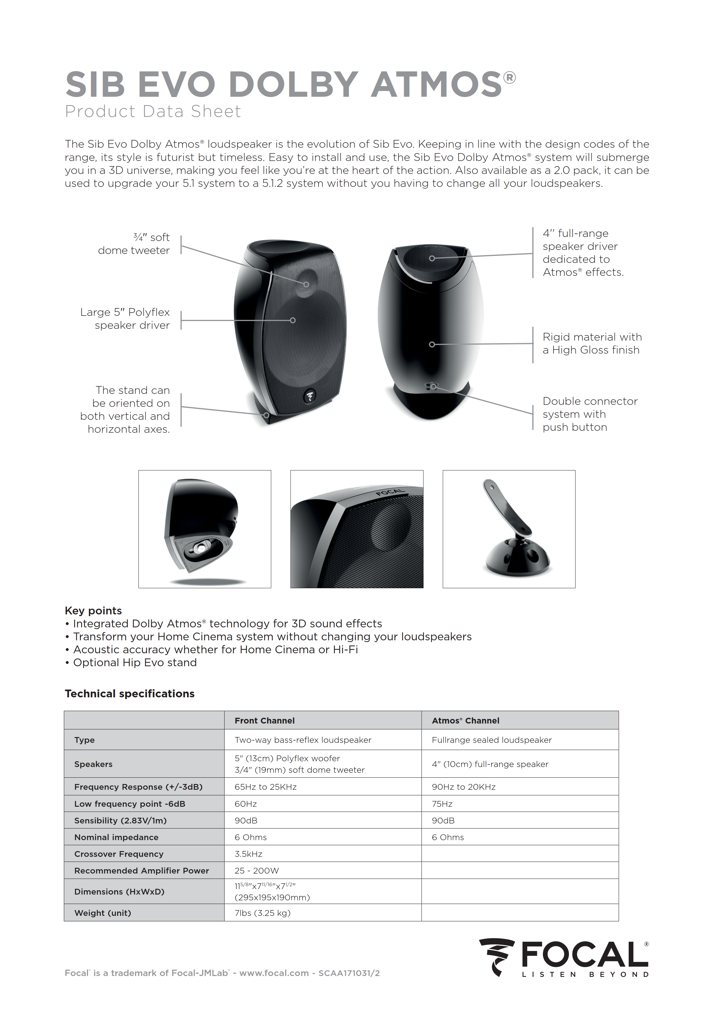 Sib Evo Dolby ATMOS®揚聲器套裝將完善您的5.1設置,將其升級為5.1.2系統,三路低音反射式衛星揚聲器